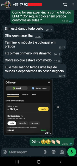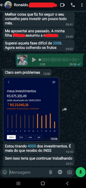 Essas são carteiras de empreendedores que aplicaram o método e hoje sabem onde devem investir, quanto aportar e como multiplicar seu dinheiro com segurança.